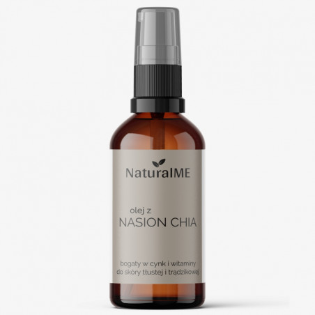 Olej z nasion chia charakteryzuje się wysoką zawartością kwasów tłuszczowych omega 3 i 6. Jest bogatym źródłem witaminy E oraz flawonoidów. Idealny do skóry atopowej i łuszczącej się. Polecany jest w pielęgnacji skóry głowy i włosów.